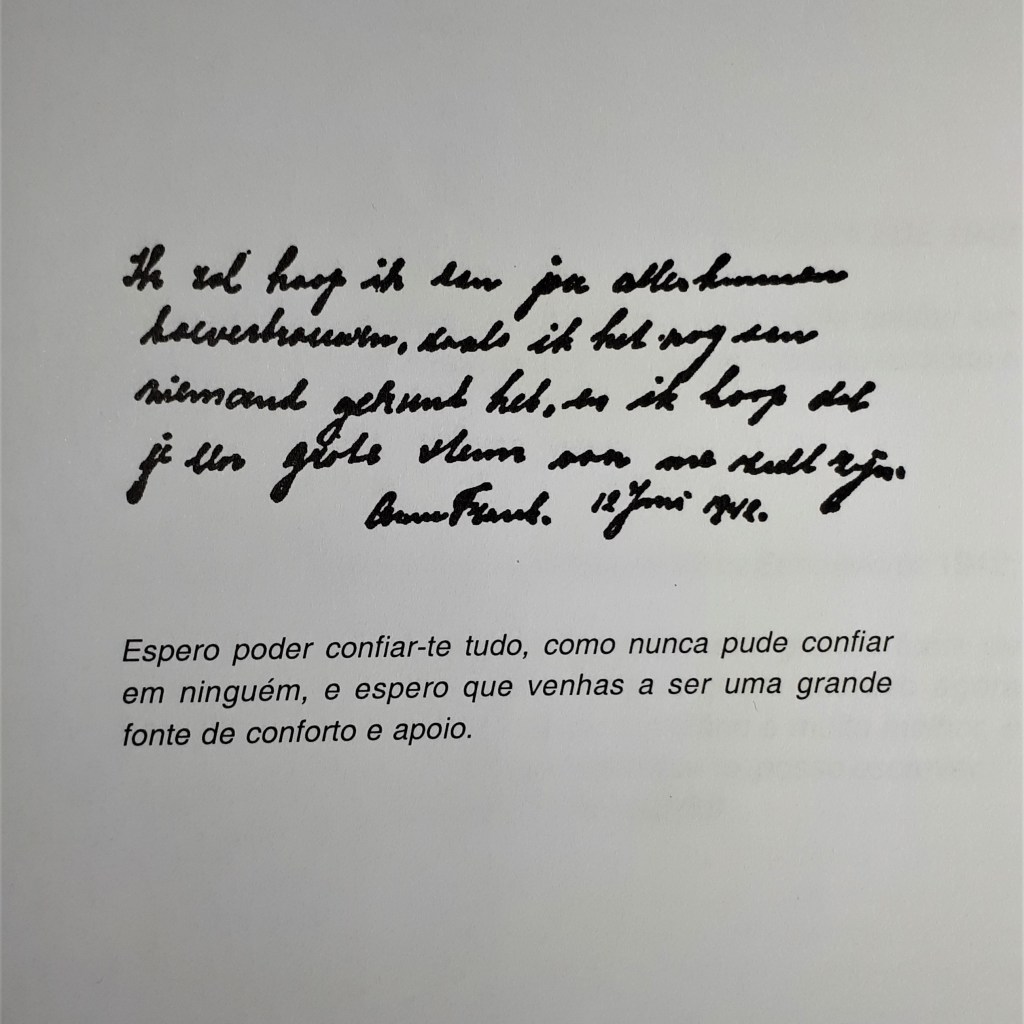 Li este livro na adolescência, numa edição da Livros do Brasil, de 2002; entretanto já saiu uma nova edição. Considero-o uma leitura fundamental, pela consciência que meu deu da II Guerra Mundial e do impacto que trouxe ao quotidiano das pessoas. De pessoas como Anne Frank e a família, que por serem judeus tiveram de limitar as suas vidas ao mínimo da sobrevivência na clandestinidade.